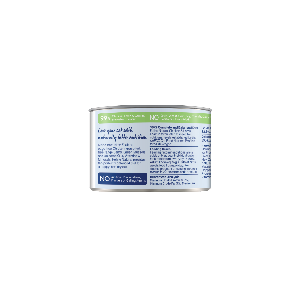 Made in New Zealand with cage-free Chicken and grass-fed, free-range Lamb, this rich-in-protein and highly palatable Chicken & Lamb diet is the perfect complete and balanced meal. Rich in taurine to support and maintain healthy eyes and, this Chicken & Lamb feast is a great source of protein and fats.